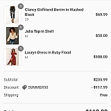 My daughter needed a dress for her School dance. She decided on the Perla, but they only had it in a medium and she is a size small, so we thought we would see if it fit. When I went to check out there was a banner that reads, "30% off with code SAVE30 *excludes select products*". When I put the $118 dress in the cart and clicked the checkout button, it took me to the next screen where it asks you to enter 'gift card or discount code' and press the 'Apply" button. On this page there is also a banner that reads, "USE CODE SAVE30 FOR 30% OFF *SOME EXCLUSIONS APPLY". If you scroll down to the bottom of the page there is no additional information or "* some exclusions" listed. So I checked out using code SAVE30 and the dress was $82.60 and then I was charged $7.99 for shipping. Again, on this page the banner reading, "USE CODE SAVE30 FOR 30% OFF *SOME EXCLUSIONS APPLY" is listed with no additional information or "Exclusions".