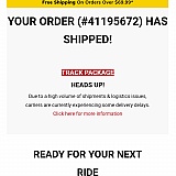 Unreal in to days market where companies are shipping with in 2 days that JP Cycles takes 10 days to just prosses the order never again will i buy from them
