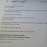 Ordered a bouquet for my mother on April 19th for delivery on May 10th. Got email saying delayed, will deliver next day. Got this message every day for 4 consecutive days. Flowers still not delivered yet. Email support just sends automatic response and it is impossible to get any representative on the phone. I have spent $72.47 of which $11.99 was a delivery charge. WHERE ARE MY FLOWERS! Is this company a scam?