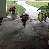 You can see the flash has gone off to illuminate the arrangement but the area is darker as you move away. The top of the picture from the drivers phone shows the time and date stamp 14 de febrero 20:11 (language choice of driver's phone is Spanish) which is 8:11 pm on February 14th Valentine's Day. The wood planking and white ceramic planter at the top of the photo matches the customer's picture of their front porch. We have advised the customer of this but he stated when they checked their door after 8:11 pm on 2/14 there was no arrangement but they discovered it when they went to leave their home the next morning. The time stamp from the drivers phone supports delivery on the 14th and we do not know how the phone data could be altered or why the customer looked out and did not see the arrangement.