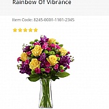 5/1 Just to add insult to injury - the recipient sent me a photo of the delivery - the flowers did not in any way resemble the order of Rainbow of Vibrance. Why bother having bouquet names to choose from, if you just throw together a bunch of random stems - certainly did not want red flowers for someone who had just had surgery