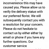 This company has really let me down. They committed to deliver my order on Friday last week. They did not deliver the order and when I called to understand the reason, they requested for one more day to fulfill the order. The same thing happened on Saturday. The order was still not delivered by Monday afternoon when I called to get an update. At this time, they said they could not deliver the order on Sunday and did not try any further as I supposedly requested to stop the order if they could not deliver it by then. Even worse, they implied this was all my fault because I did not answer an email they send Sunday afternoon asking to reactivate the order. Really? After being over 3 days late this is my fault. This is just not acceptable. Just go to a store, buy your flowers and deliver them yourself. It will take you less time and will be cheaper.