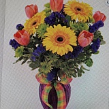 I ordered very joyful cheery Mother's Day arrangement from their website. What was received was a bland grocery store arrangement that I would NEVER have paid $100 for. I understand that florists need to substitute but, according to their customer service, I don't think the florist even sees the picture. Bright yellow Gerbera daisies, Rich pink tulips, with dark purple fill flowers, some green flowers & THEN green fill with a colorful bow... doesn't translate to some yellow roses, some pale pink carnations & green stuff. Can't help the vase but DAMN IT, at LEAST put a bright bow! Well, at least I got refunded for the balloons they didn't bother with...