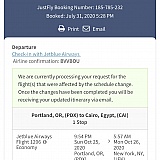 Answer: My recommendation would be not to book through JustFly. They are the worst.