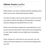 I tried contacting JustFly, but never got a response. I highly recommend avoiding this company at all costs.