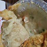 This is the Pot pie I received as you can see the top was sunken and when I opened there is a tablespoon of filling in there. Shameful