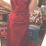 Received a lot of compliments on my dress and I looked absolutely stunning with it on. I wish the material was a little more silky because it would have made the dress more sexy. I wore this dress as the maid of honor at my sisters wedding. The picture I will submit will have an added garment with it that does not come with the dress. I would recommend this dress to any type of formal event you will turn heads for sure. I ordered the color burgundy, however it turned out more reddish to me, nothing like the color the ladies are wearing in the promo shot. So I would be mindful of that when ordering from this site.