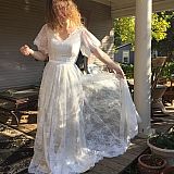 This dress is simply lovely; the perfect blend of elegant and whimsical. Having seen the same photos advertised elsewhere I was not quite sure what to expect from this seller, but decided to take a chance when they responded so helpfully to my enquiries. I am very glad that I did, for I found their work to be of good quality and very reliable in shipping estimates. I even asked for some customization (higher by 2"" in the front and 7"" in the back) and was accommodated perfectly in both cases without any additional charge. I was a bit concerned about ordering online from so far away, but found the communication top-notch, with all of my questions answered in less than a day. I was also needlessly worried about the quality of the dress--it is just as pictured and made of both a heavy/sturdy under layer and a light and flowy lace overlay. I will say that I did not expect when ordering ""ivory"" that only the under dress would be in ivory, while the lace is in white, but I find now that I actually prefer this to any other option, as the lace stands out in contrast and the ivory is of a very slightly yellow hue that might have been overpowering had the entire dress been the same color (as it is now they complement one another quite beautifully).