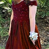 This dress was so beautiful.If you do buy it I suggest you customize and make the bust area a inch or two smaller than your actual size because it fit a little big in the chest and the little sparkles get everywhere.Other than that this dress was perfect. Also, i would buy the dress early so you can get it altered if you want because the train is a little long.