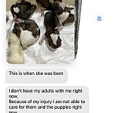 Took deposit nd would not show current pics of dog. Made up many reasons to break appts. No such person Susan Arslan in NJ at all! Scammer. Mother is a pedigree but in the baby shot you see the legs of matted fur and pee covered mama.