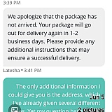 Rinse and repeat. Lies about additional information being needed for delivery. No movement for weeks. Then they say they don't know where the package even is and to contact the seller, Straight up theft. Perhaps we should create a database with the contents of undelivered packages and monitor secondary selling sites.