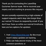 I absolutely love lasership they are better than ups fed x and any other! I have never had a problem they put my items exactly where requested and I hope they pick up more deliveries! Companies NEED TO CONTRACT lasership! The best in my online shopping experience.