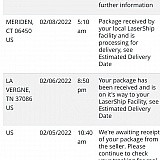 Just about every time I make a purchase at Nike.com and they choose to ship item with Lasership, it reaches their warehouse in Meriden, CT then they're unable to locate package. It's not only with Nike, I've had this issue with other online retailers who chose to ship with Lasership. I don't get or miss out on my product but at least I get a full refund or the company ships using another reputable shipping agency.