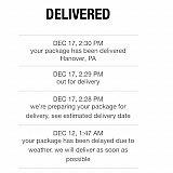 I ordered items to be delivered by Nike. Lasership was suppose to deliver it on December 3rd 2021. They didn't show up. They didn't call, text or email. I inquired about where my items were. A Nike representative said it was in the Lasership's warehouse. I email, tweeted and called. I received one response that said they were working on it. After almost a month of waiting and numerous phone calls to Lasership and Nike, with no one being able to tell me anything, I canceled my order. The next day, after cancelling my order, I received a texted and an email saying my items were delivered at 2:30pm on December 17th 2021 even though it was 12:30pm on December 17,2021. I wonder how they delivered something at a time that haven't happen yet. Lasership is the worst company I've ever had the unfortunate pleasure of dealing with.