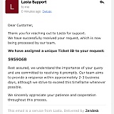 Answer: Dear Michele, we will definitely help you. Please provide your email address with which you registered for Lasta.