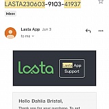 Answer: Dear Michele, we will definitely help you. Please provide your email address with which you registered for Lasta.