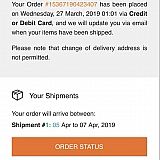 Later received a txt message from a random number saying that my item would be delivered next tuesday!