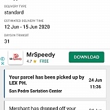 I have a total of 6 items bought from Lazada a week and a half ago. 3 of them are out of stock but was told it will arrive next week. I bought 3 more items yesterday and was told ETA within a week. The courier is friendly and accommodating. I was not home during the first attempt to deliver my items. I asked the courier to come back on the same day after an hour and he did. So far I like Lazada.