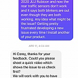 Order the Headlight, Fog Light, and Tailights led package for my 2020 JLU. Not plug and play at all. Headlights installed without incident, other than the fact you have to hook up an additional wire. Fog lights didn't fit into my bumper and when contacted was told I need to spend another $40 for brackets for my bumper. Installed tail lights and while the look great, as soon as I turned the vehicle on the rear blind spot alert immediately stopped working and my message center told me both tail lights were out. Messaged the company on Messenger because it seems to be the only way you can get in touch with them and have now been getting the run around for two weeks when they do respond. Also have been told that I need a different tail light than what I have. This place is a joke and I wouldn't waste your hard earned money on their trash. So disappointed and frustrated with this company.