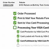 Been waiting on my $150 rebates for 4 months. Just sitting on credit card company to send the card for past 2 months. Nobody can tell me why. They must hope you will forget the $150. This rebate is a scam! Stay away you will never get your rebate!