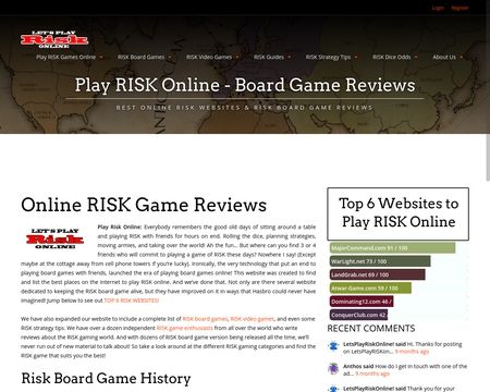 LetsPlayRiskOnline has a rating of 5 stars from 1 review, indicating that most customers are generally satisfied with their purchases. LetsPlayRiskOnline ranks 8th among Board Games sites.