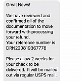 On Friday, August 19,2022, after sending all of the required and requested information to LG, we were advised "Great News!...our $809.99 refund has been approved." We never received our refund. Then on Saturday, October 1,2022, we received a text message advising "...you have received a refund." We did not receive the refund. On April 19,2023, I sent a letter via UPS to Thomas Yoon, President & CEO, providing all of the text messages, which included confirmation our $809.99 refund had been approved. Then today, I get a text message advising "...Please note that your refund will be delayed unless all information is collected and matches what I have provided to you in this message." So, even though I provided ALL the required information, received confirmation they have received all of the required information, they expect me to resend everything to them. They are liars! DO NOT DO BUSINESS WITH LG! Plus, it's apparent, I am not the only customer who has been shafted by this corporation since they have such a low rating. If I could have given NO STARS, I would have!
