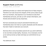 This is a typical email response from my numerous messages I've sent to LifePoints.