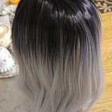 Wig with grey and silver in description and pictures that matched that description shown on site. Received wig and top 1/3 of wig is solid black, lower 2/3 grey and silver. Was not worth the trouble and cost to return, also hair is thin and can see cap through hair. Did review with picture of real product and 3 weeks later it is still not posted on their sit