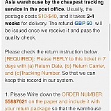 I ordered a pair of childrens shoes and a pink dress. The shoes were the wrong size and dress was a pair of trousers instead. I've tried contacting customer service for a full refund and was told they don't issue returns labels and I'd need to pay the postage.