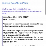 This is Bloo, supervisor of customer service, Lightinthebox.
