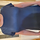 Then they came and were not navy blue but a slate blue, the sizes were much too big everywhere on me. I was told they looked like moomoos. I was not happy!
