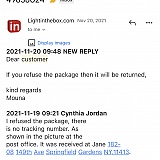I ordered a Christmas present for my wife on November 13th. It was shipped on November 15th, and still has not been received. The last tracking update was on November 30th, saying the package was in transit to the next facility. That's more than two months ago, and lightinthebox is refusing to refund me. The first response from customer service told me that due to the holidays and coronavirus, my package might be delayed for 1-2 weeks and not arrive in time for the holidays. That's understandable, except I sent that email on February 2nd, more than a month after my Christmas present already did not arrive in time for holiday. The 2 week window they quoted for the delay had also lapsed by more than two weeks. I again stated I wanted a refund, and this is their response:
