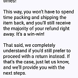 Le service client m'a proposé soit un remboursement ou un échange. J'ai opté pour un échange et j'ai mis mon pull gris et blanc en attente de réapprovisionnement avec un avis de disponibilité.