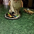 He got a bite wound on his tail and his eyes are goopy with conjunctivitis. But other than that, he actually gained weight while he was lost because of the kindness of others.