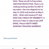 Today is May 24,2020. I placed 3 orders totaling $366. The first order was "shipped" out on May 5, another May 10,2020. Still have not received ANY ORDERS YET. They keep giving me the run around about shipping. Keep giving me wrong and invalid tracking numbers. I asked for a full refund today. Ill go to the mall now they're back open. Do NOT WASTE UR MONEY. ALL THESE LOW BUDGET CHINESE COMPANIES DO IS SCAM. SHOP LOCALLY WHERE U WLL FOR SURE WALK OUT WITH WHAT YOU BOUGHT.