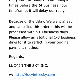 Lucy in the sky is always very receptive and responsive whenever I've had a problem. They always resolve the issue and I appreciate it. Dresses are always high quality and cute. Love it!