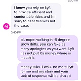 I took a Lyft to the grocery store, bought groceries and then spent an hour trying to get a Lyft back, but Lyft has ZERO drivers out. I had to walk my groceries back 3 miles in the snow and negative temperatures. I contacted Lyft and the customer service representative says "sorry, it won't happen again." A teenager response, not a billion dollar company response. I hope this company gets sued over some crap like this. Poor in every category. Abysmal.