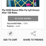 Well i was suppose to get 1000 bonus after 100 rides if i got them in 30 days, so i got them in 2 weeks, than instead they said i would get 250 and i never got that either. And my app quits on me. Its hard to get ahold of anyone. This company doesn't care about there drivers at all. I have all 5 star rating until today and my app stop working. And they decided to flag my account.
