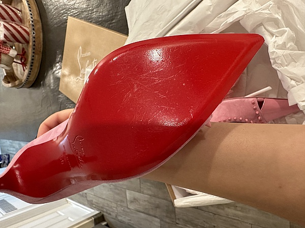 The heels arrived used and with silicone inserts in it! The red louboutain soles were all scratched.