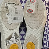 The upper and heel have wrinkles, the soles are gray and even one sole is attached with two staples!