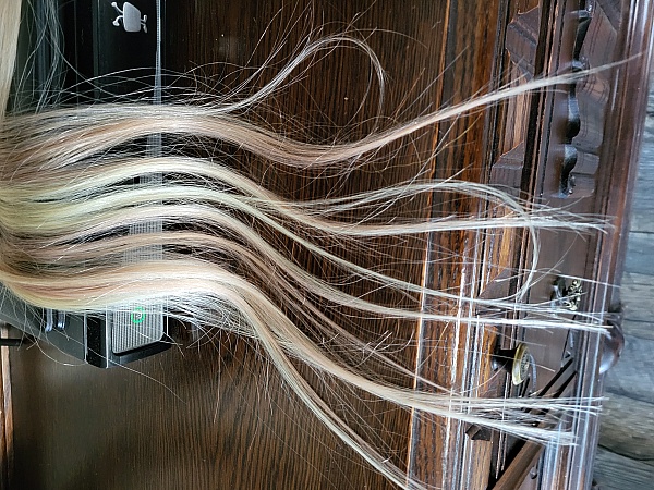 5. Got the extensions out and no question, they were thin. Not thin like I have thick hair but thin like you can't blend them into anything. Holding them up by the clips you can see through the strands almost in sections.