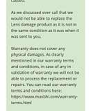 Mene display combo order kiya tha jo muje defected mila for mene replacement ke liye bheja khudse courire karke. Fir maxbhi.com ne bola ke ye product me humne jaisa bheja tha waisa nahi hai usme lens ka problem hai (lens jo screen and touch k bich me ata hai) jo ki ek manufacturing defects hai leki unhone use physical damage batake replacement k liye mana kar diya.