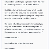 Request a refund and was offered less than half of my money back and to keep the useless items.