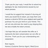 I needed to return a swimsuit because it was too small. I followed the return policy instructions and emailed them to initiate the return the same day that I received the item.They replied over 24 hours later and offered me a $9.00 refund and a $5 coupon and said I had to pay the shipping. I asked if they'd please reimburse me the full amount of $32.99 back to my original form of payment and that I would pay the shipping and provide the the tracking information. They replied over 24 hours later and offered $15.00 back to my original form of payment and told me to keep the item and give it away to friends. Also, that this is the best they could offer me. At this point I looked them up and found a lot of bad reviews of this same thing happening to others who never got their money back after shipping the item back. I decided to accept the $15 so it wasn't a total loss.I'm sharing to warn others that they do not honor their return policy!