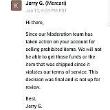 That sounds like a frustrating experience and we'd be happy to take a second look into it. If you have the time, please send our email support team a message at [email protected] and a representative will follow up with you directly, Cassandra. We apologize for the inconvenience and look forward to hearing from you soon! -Team Mercari