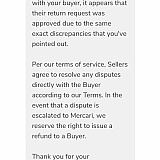 They grant buyers returns without telling the seller why or giving the seller the opportunity to defend themself or the item. So now my item went to a strangers house, was damaged by them, then returned. So I am out payment and the ability to resell. I deleted my account! Stick with poshmark... better policies and more reputable.