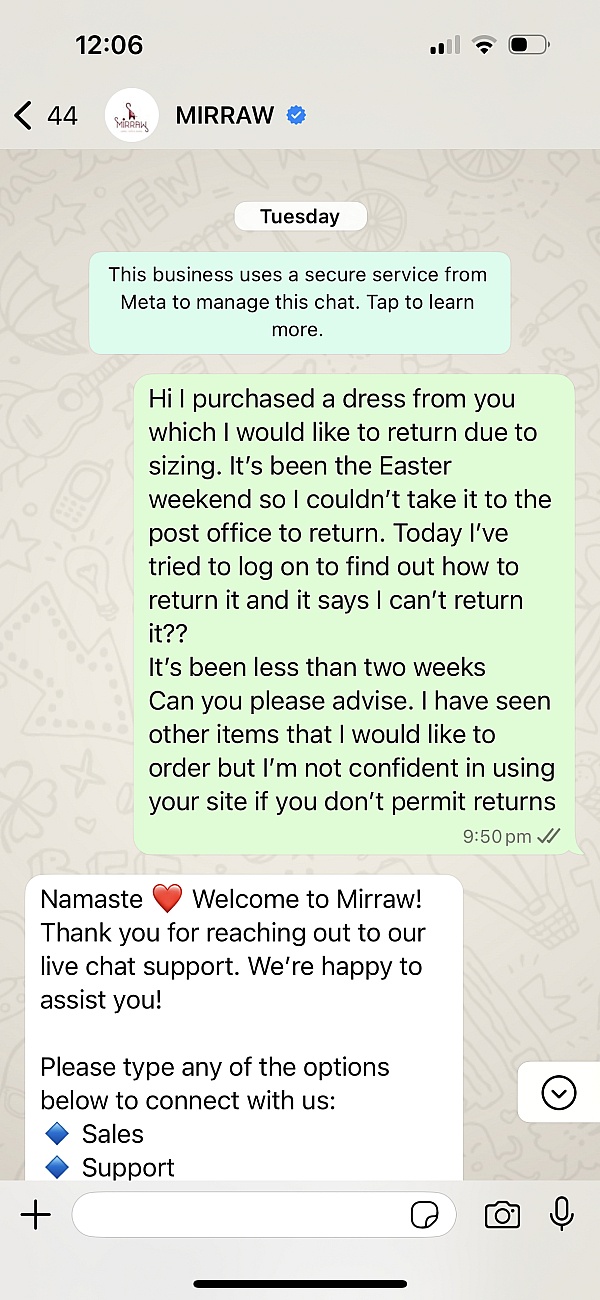After this, the Mirraw team repeatedly sent long messages urging me to accept the parcel and pushed for DHL to reattempt delivery, which took several more days. It was very difficult to reason with them regarding a refund. The communication was poor throughout, and there seemed to be constant miscommunication from their end.