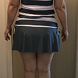 It was hard to narrow down my purchase from all the pretty choices! I am 59 yrs old and looking for adequate coverage without looking frumpy. I chose the Fake 2in1 Striped Dark Grey Tankini Top with matching skirt and the High Waisted Paisley Print Green Swimdress Top with the Pocket Detail High Waisted Swim Shorts. I followed the size guide lines and selected M tops and L bottoms. I am 5' 5" and weigh between 140-145 pounds. I wear a size 14 pants and 12 dress. The suites fit very well and feel great. The best part for me is that the shorts cover my rear cheeks and are so comfortable. (the skirt comes down enough in back, also) All the pieces are of high quality and look good. My husband likes them, too:-) Bad lighting in my pictures doesn't compliment the colors; they are better in person. I can't wait to go swimming!