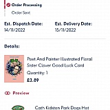 15 November 2022 my orders should of arrived they were for a friend leaving her job. Had to go out and buy another gift. Still orders are being processed and have not been sent. It is now the 20th! Avoid them if you need you item for a special occasion try someone else.