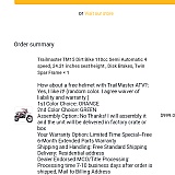 Ordered 2 mini-bikes (ICE BEAR Trail 70 125-cc.) The actual ordering process was GREAT... kind & courteous personnel. Helpful with my questions and quick resolution. Everything went BAD after actually providing my credit card# for the 2 bikes.